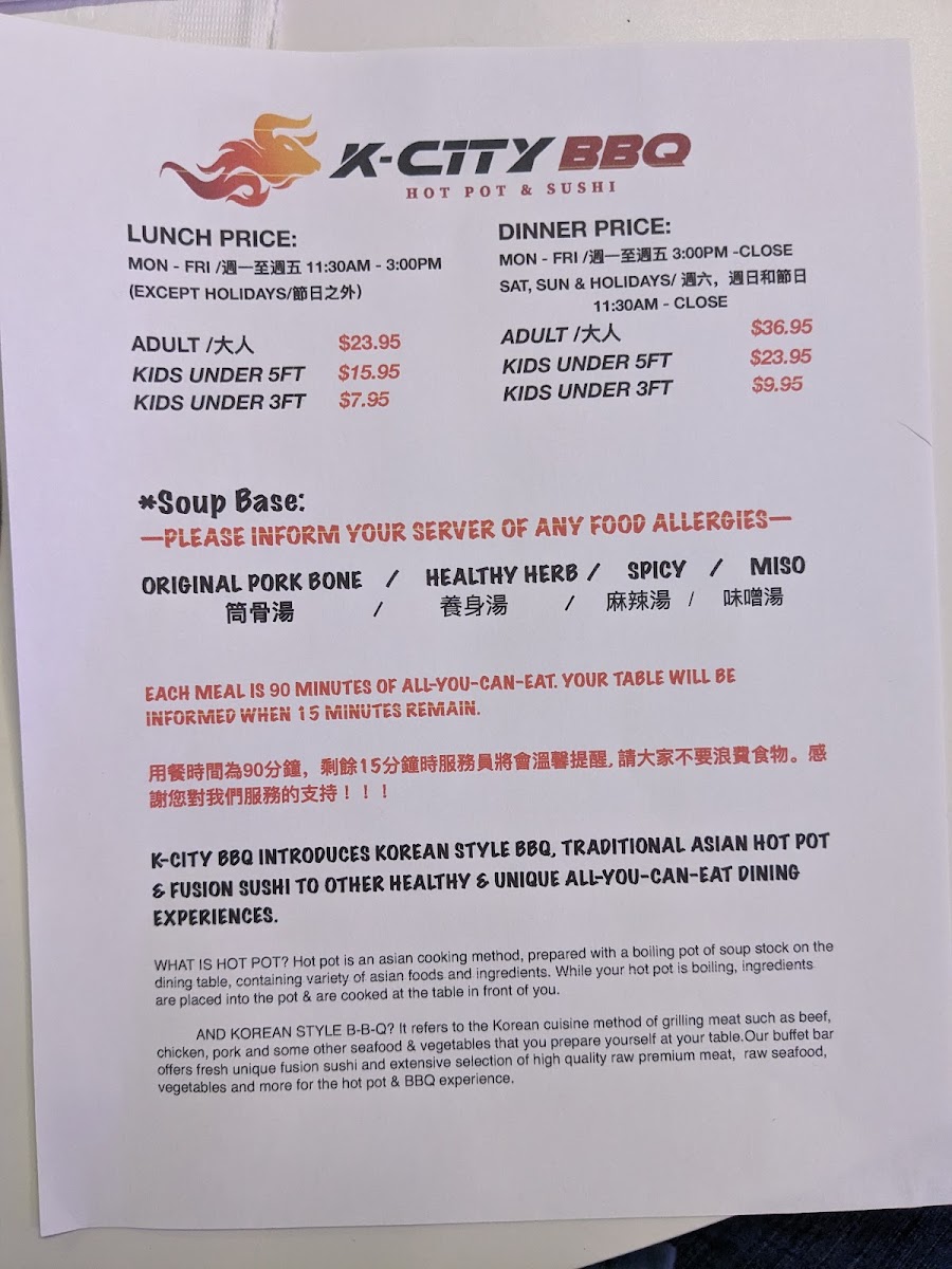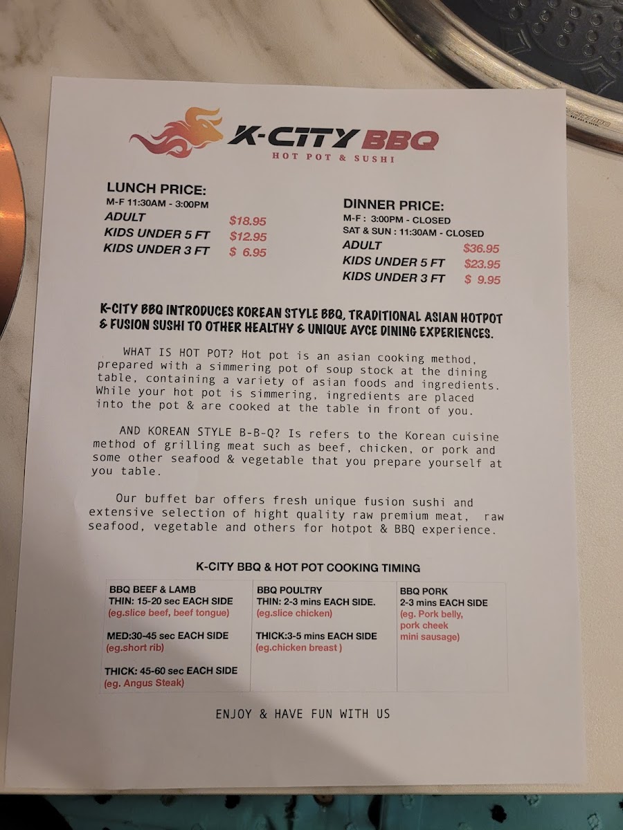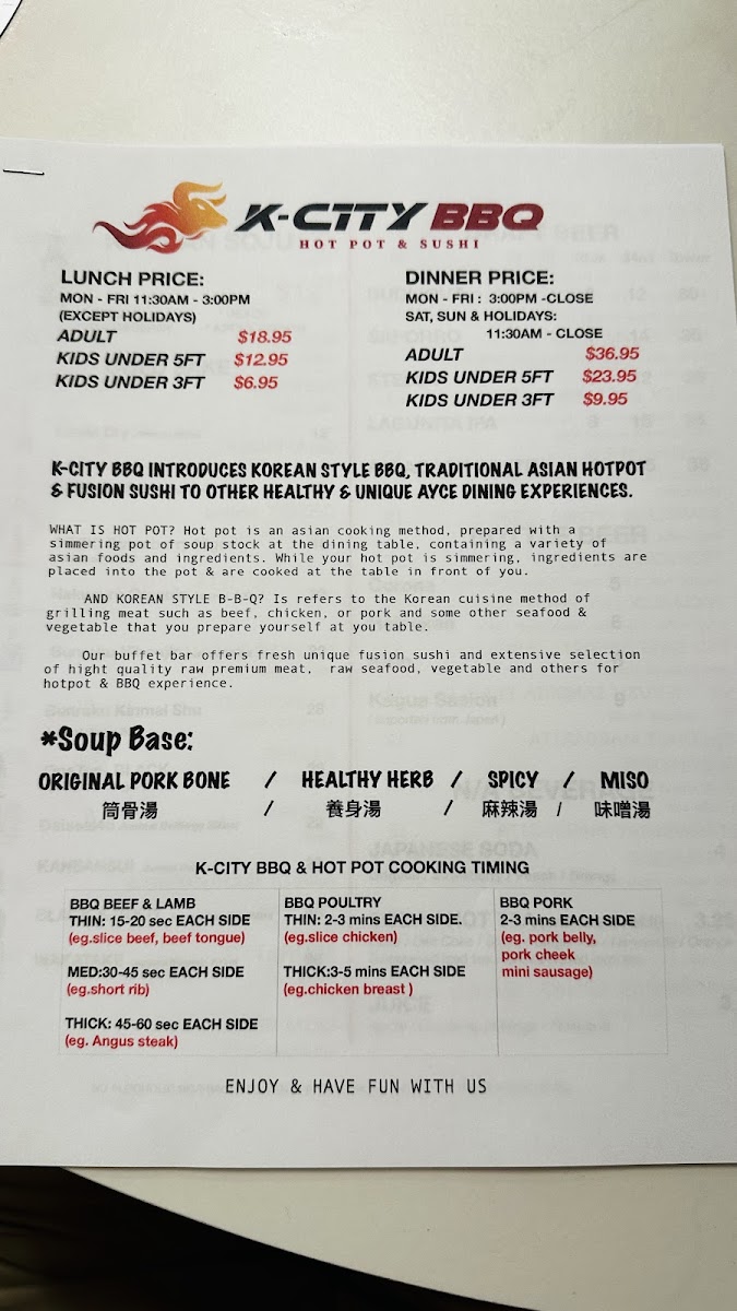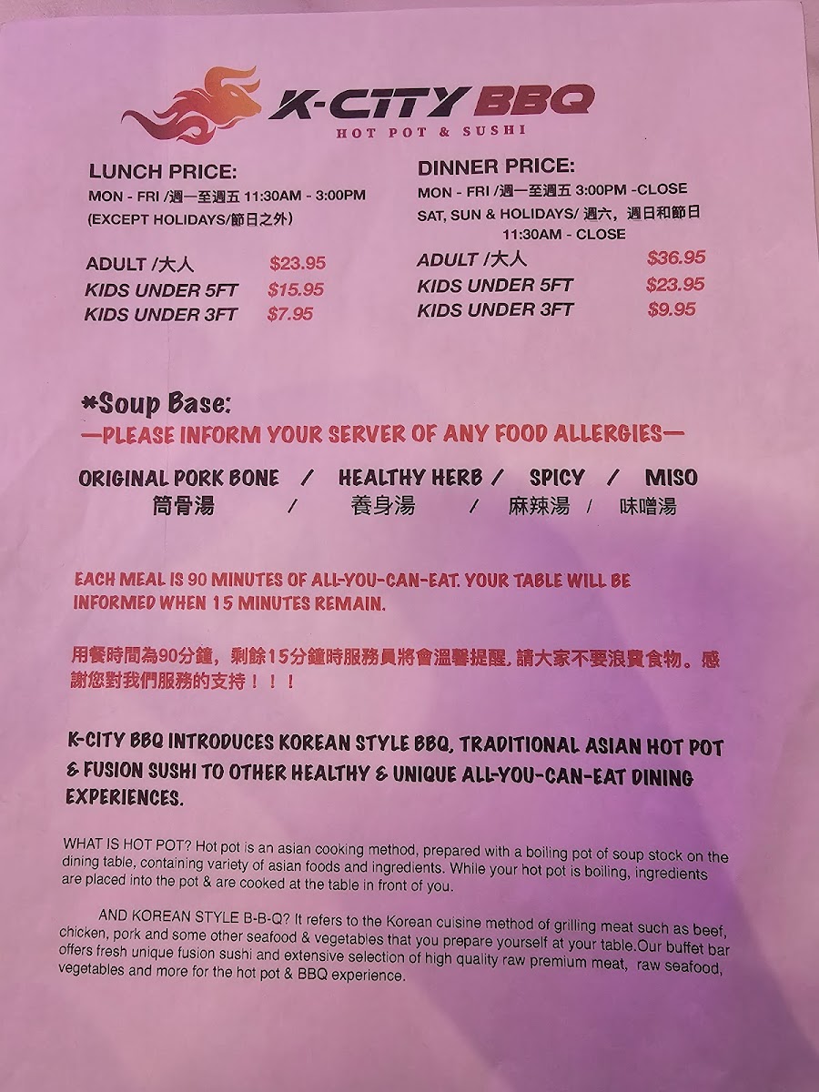 K-CITY BBQ hot pot & sushi Menu