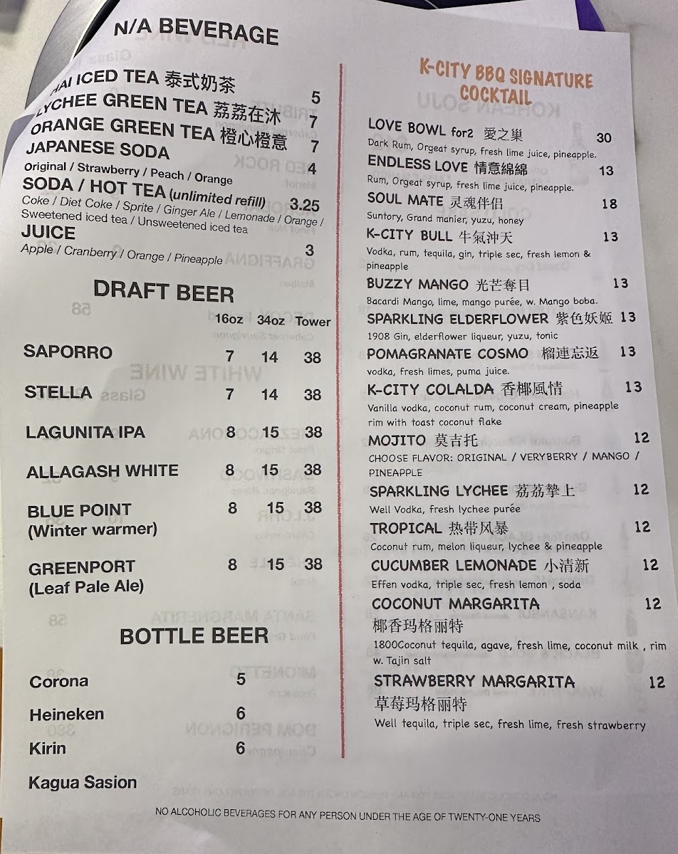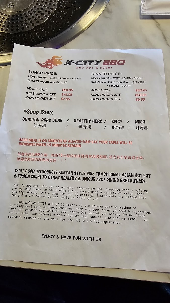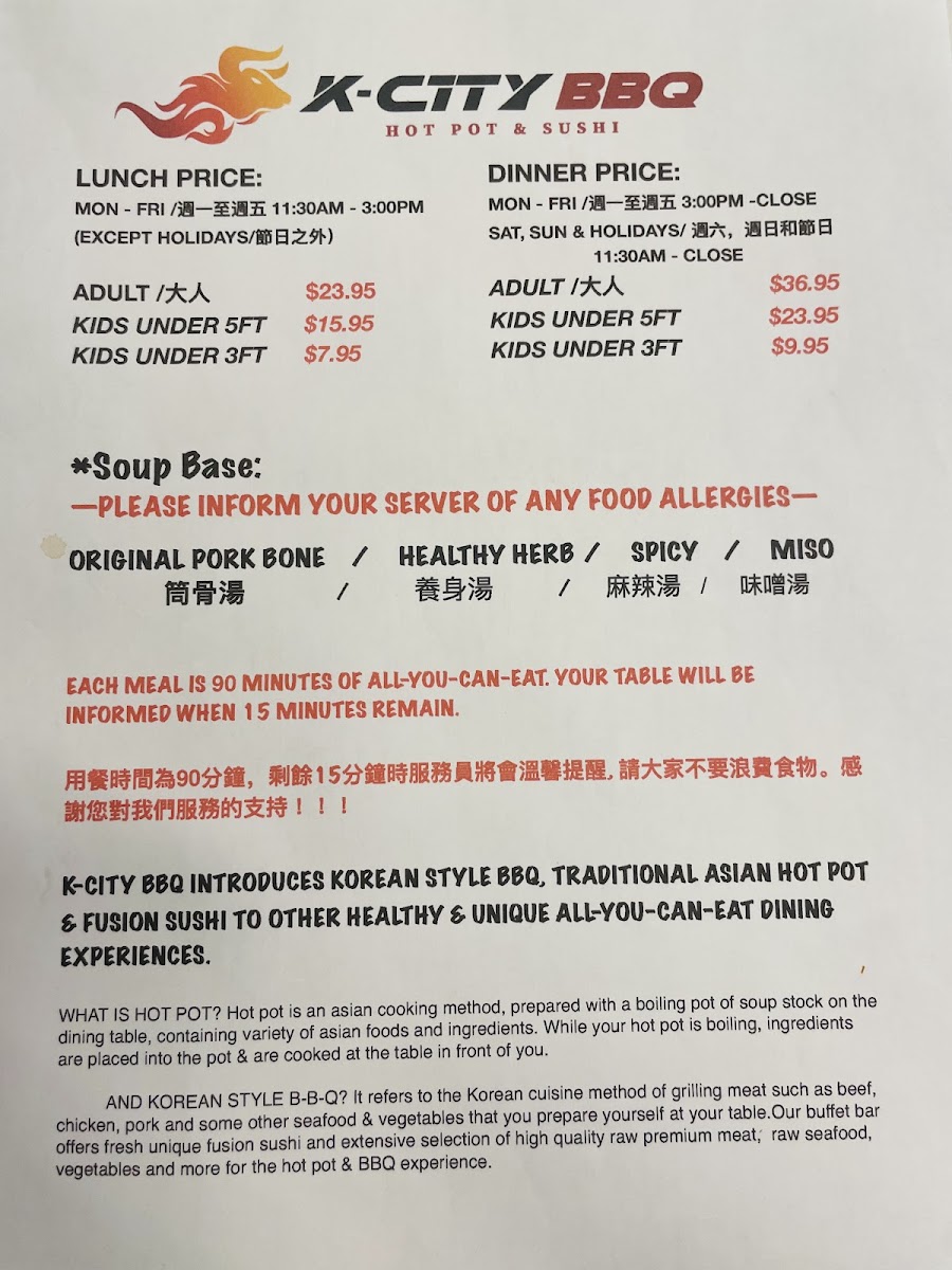 K-CITY BBQ hot pot & sushi Menu